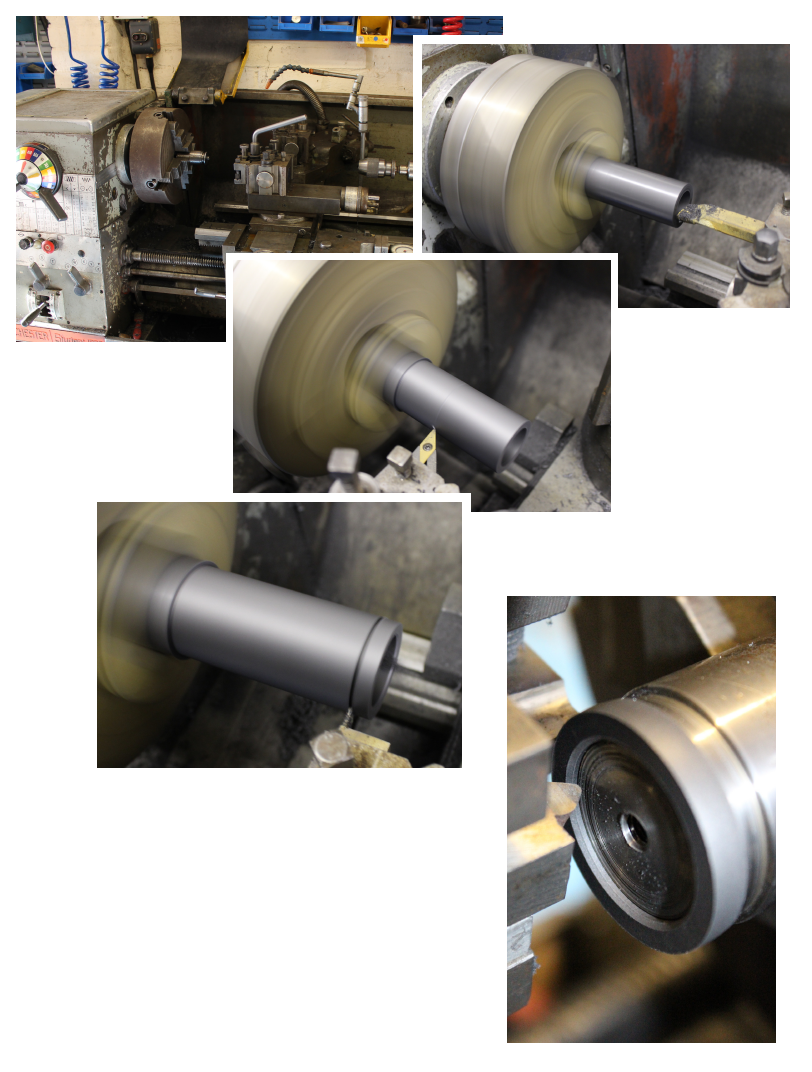 The PTFE bar goes into my Colchester lathe and is bored, turned then parted into lengths.